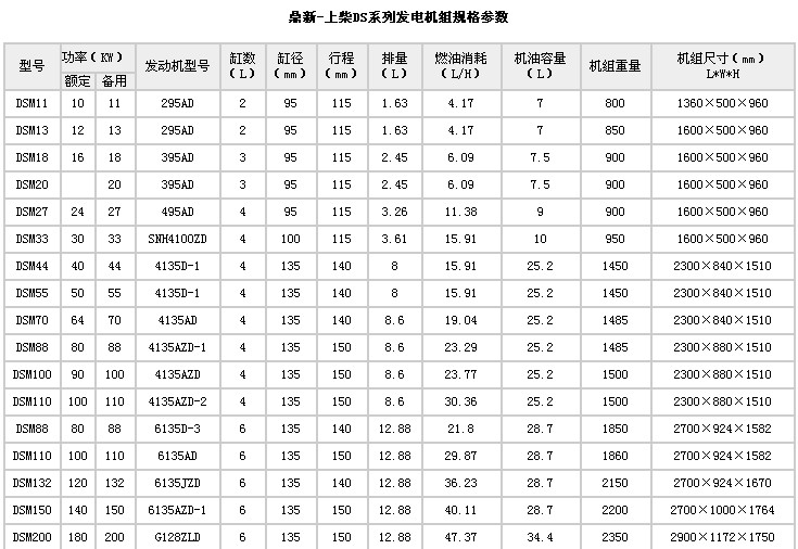 | 产品介绍: 上海鼎新——DS系列柴油发电机组,是采用上海柴油机股份有限公司的135柴油机配套国际、国内品牌电机制造而成。我公司是上柴动力电站用机最大的OEM单位。该系列产品是我国历史最悠久的品牌之一,具有成本低、维护使用方便、配件全国连锁供应等特点,深受国内外用户推崇。 |